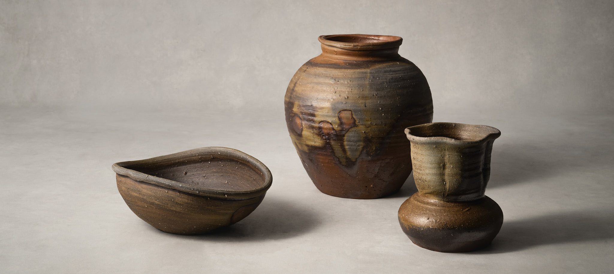 The Japanese ceramicist Eisuke Morimoto is a modern master of Bizen-yaki, the oldest living form of pottery in Japan and one of the six forms adapted from Korea’s stoneware tradition during the Heian period roughly 1,200 years ago. Morimoto still uses the four-chamber Nobori-kama wood-fired kiln he built a half century ago, as does his son Hitoshi Morimoto, to whom he has passed on this ancient tradition, and an internationally acclaimed sculptor in his own right. The soil used to form Morimoto’s clay is mined from the fields of Inbe, near his home in Bizen. To achieve his signature Bizen-yaki finishes, Morimoto uses no glazes or paints of any kind; instead, the hues of his work are born from preexisting qualities found in his clay, brought out under extreme heat during the firing process.