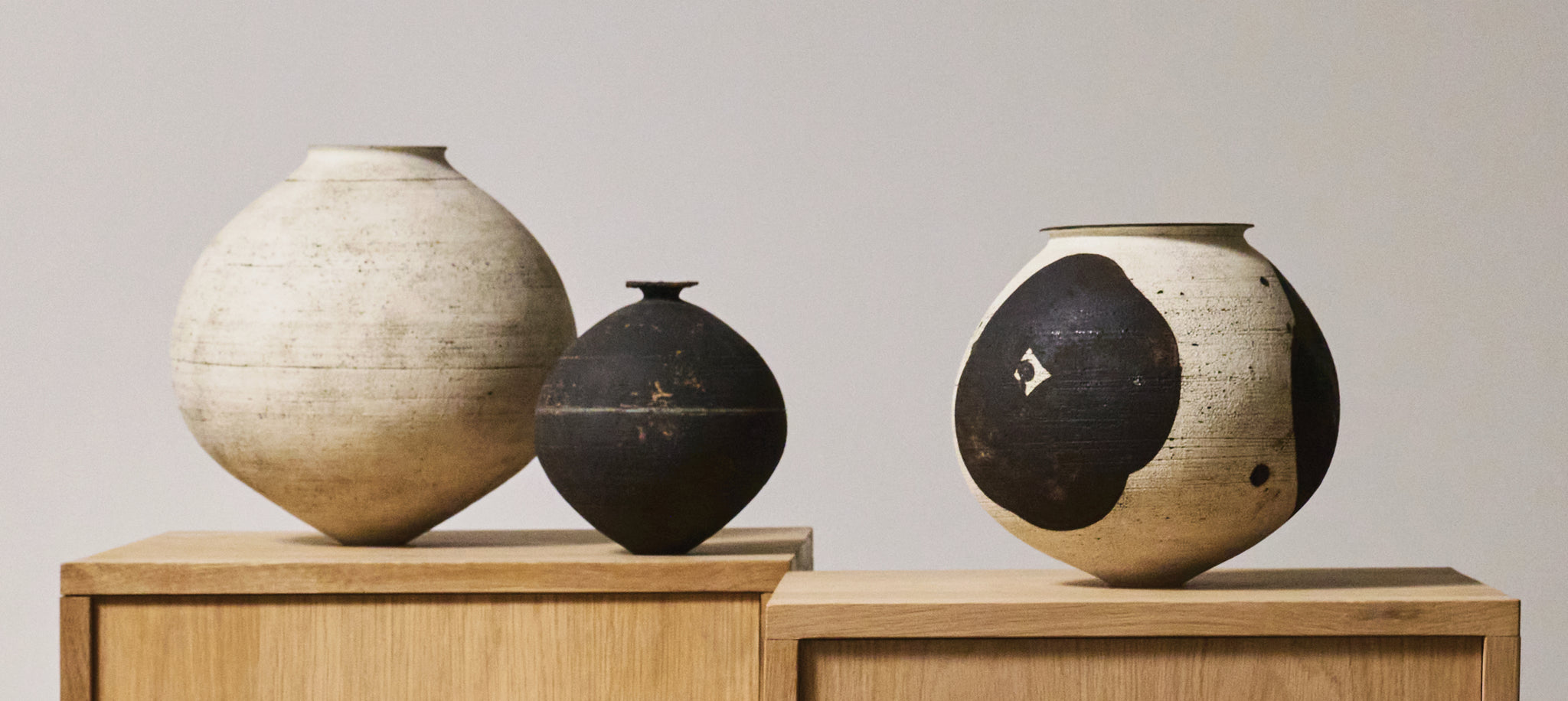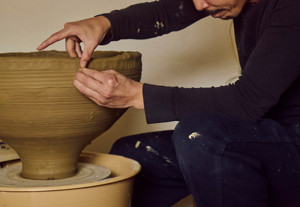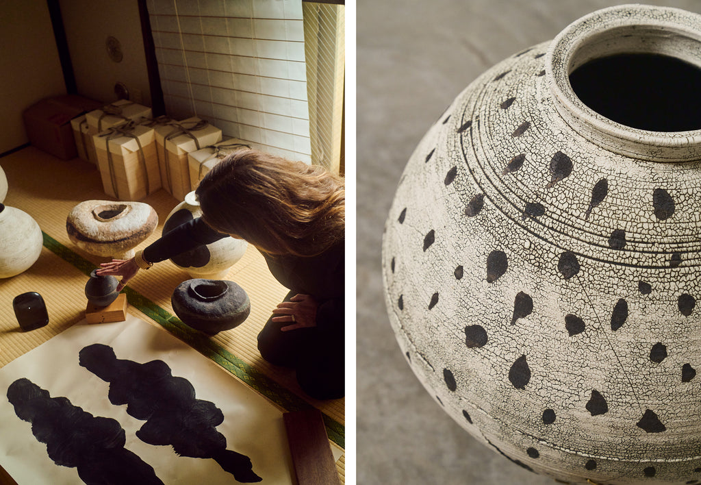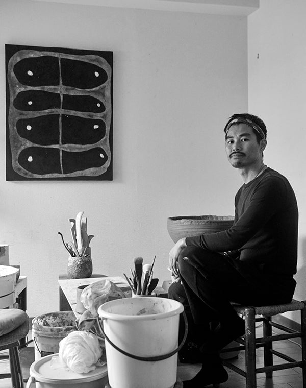 Japanese artist Kansai Noguchi's journey from improvisational musician to master ceramicist spans continents and creative disciplines. Raised on Shikano Island near Fukuoka, Noguchi grew up immersed in local fishing culture and the structure of jazz, where seemingly arbitrary rearrangements can make performance more electric. After years touring Japan with various bands, a 2013 trip to New York City inspired him to pursue visual art: a path through new material that necessitated invention. Returning to Japan, Noguchi undertook rigorous training with sculptor Takuya Yoshida and ceramist Ikuko Hiyoshi. As novel as Noguchi’s artistic approach appears, it is really an inheritance of the functional simplicity and classic forms of Jōmon pottery, Korean Yi Dynasty ceramics and classical Greek sculpture. From large sculptural vases to smaller disc-like forms, signature works feature intricately crackled white glazes and bold monochrome patterns. In his hands, graphic modernism is deliberately weathered, capturing a striking tension between contemporary visual language and the timelessness of ancient artifacts. "I'm attracted to things that have endured over time," Noguchi explains. "Physically, objects only continue to decay, but there is a certain beauty there"—between past and present, silence and sound, tradition and technique.