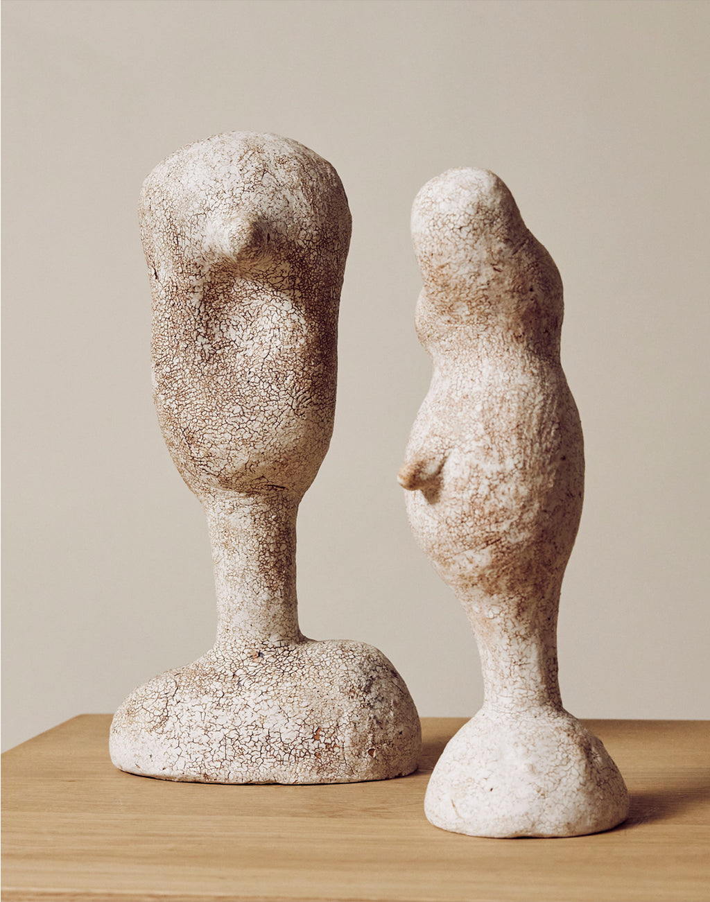 Today, Wells paints and draws, primarily in ink and gouache, in her apartment and makes ceramics at Greenwich House Pottery. Her forms are organic abstractions—limbs, heads, and torsos—emerging without conscious intention. She often works on pieces for days. Hand-building her sculptures, she forms and reforms a shape as it morphs from something arbitrary and complicated to a work that is simple and whole. In her ceramics, Wells does not emphasize technical expertise and keeps surfaces unassuming to make an emotional impact through the power of form.
