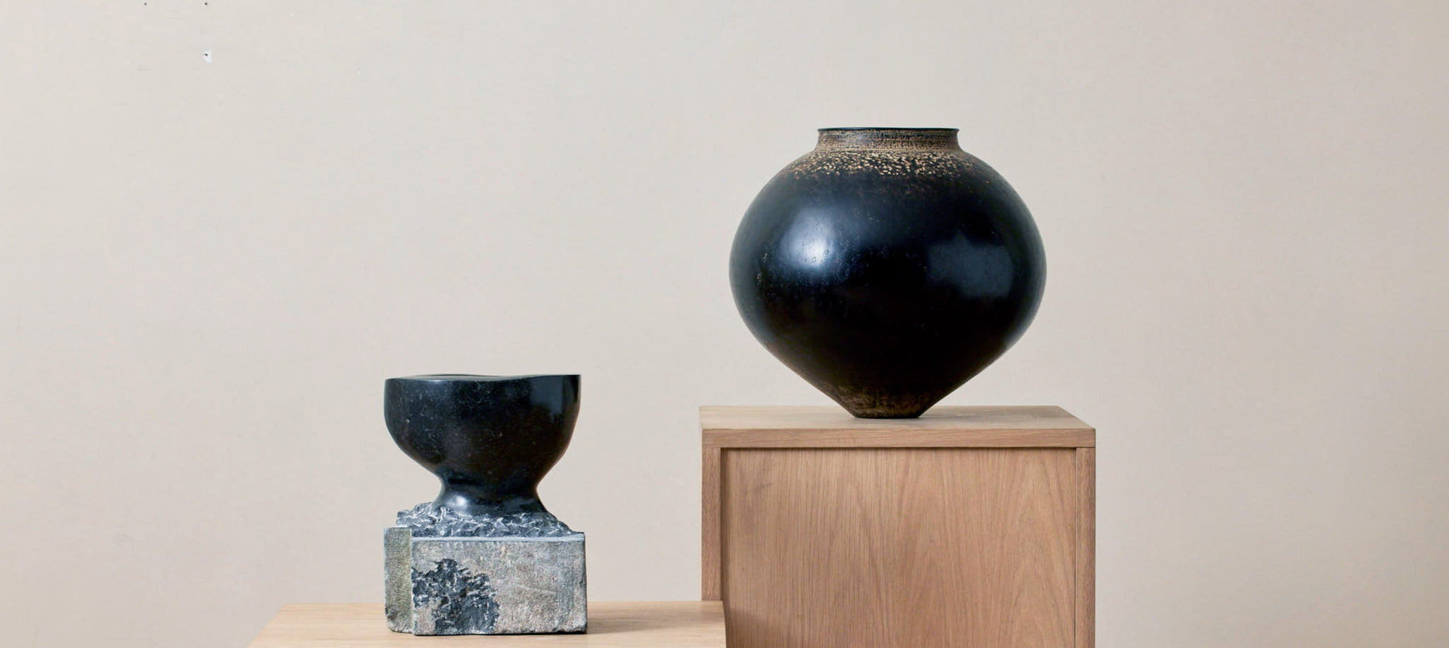 KEPLER, FOOTED PEDESTAL NO.1, CASEY ZABLOCKI, BLACK GLAZED CERAMIC, 18.5"X 18.5"X 11.5"H