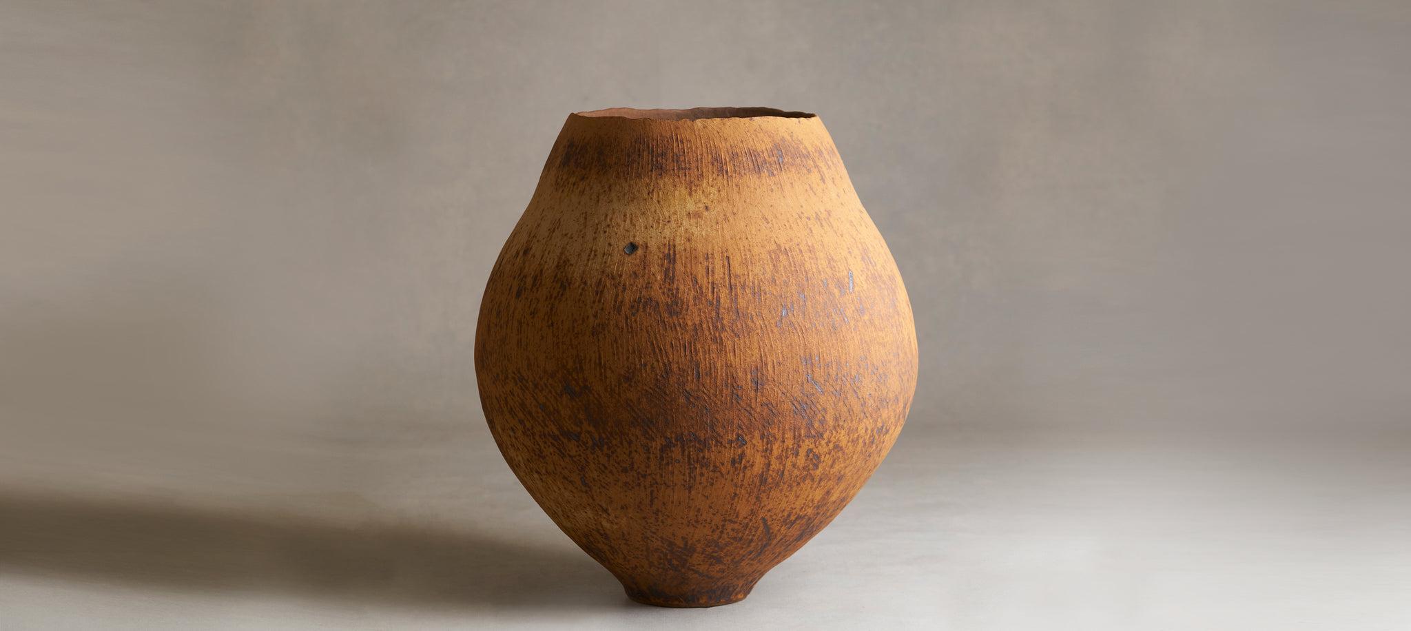 2010-2021, STONEWARE, IRON STAIN, CLAY AND WOOD ASH SLIP, 21.5”H X 20”DIA, RH-CV05